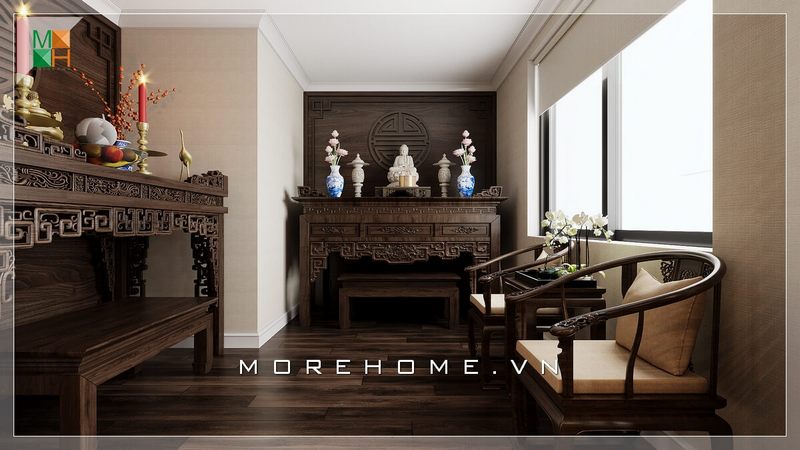 Chiêm ngưỡng mẫu thiết kế nội thất phòng thờ ấn tượng và đẳng cấp mang phong cách hiện đại, có nhiều cửa số thông thoáng dành cho không gian chung cư cao cấp, nhà phố, biệt thự,...