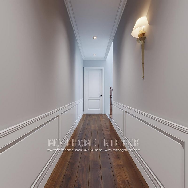 Hình ảnh minh họa cho việc hoàn thành của hệ thống phào chỉ tường theo phong cách tân cổ điển để trang trí biệt thự Ecopark Hưng Yên.
