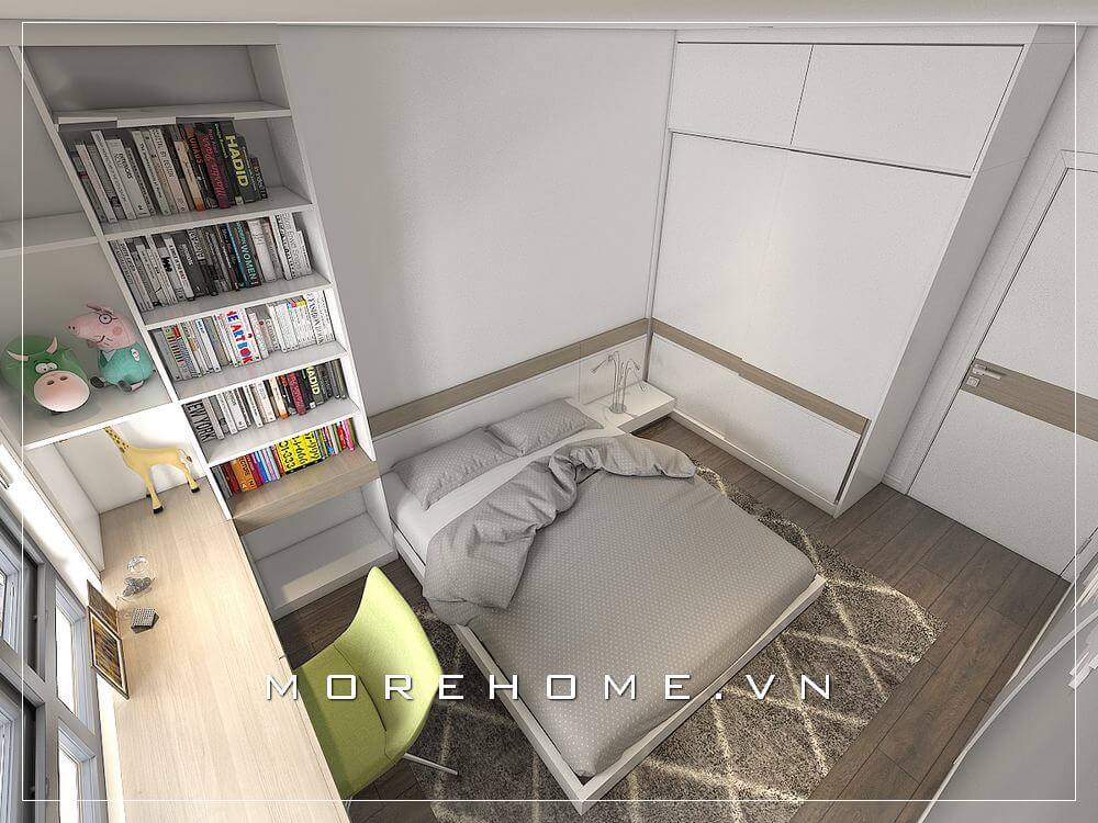 Tủ quần áo màu trắng được lựa chọn mang lại cảm giác tinh tế và liền mạch, thoáng đãng hơn cho không gian phòng ngủ nhỏ